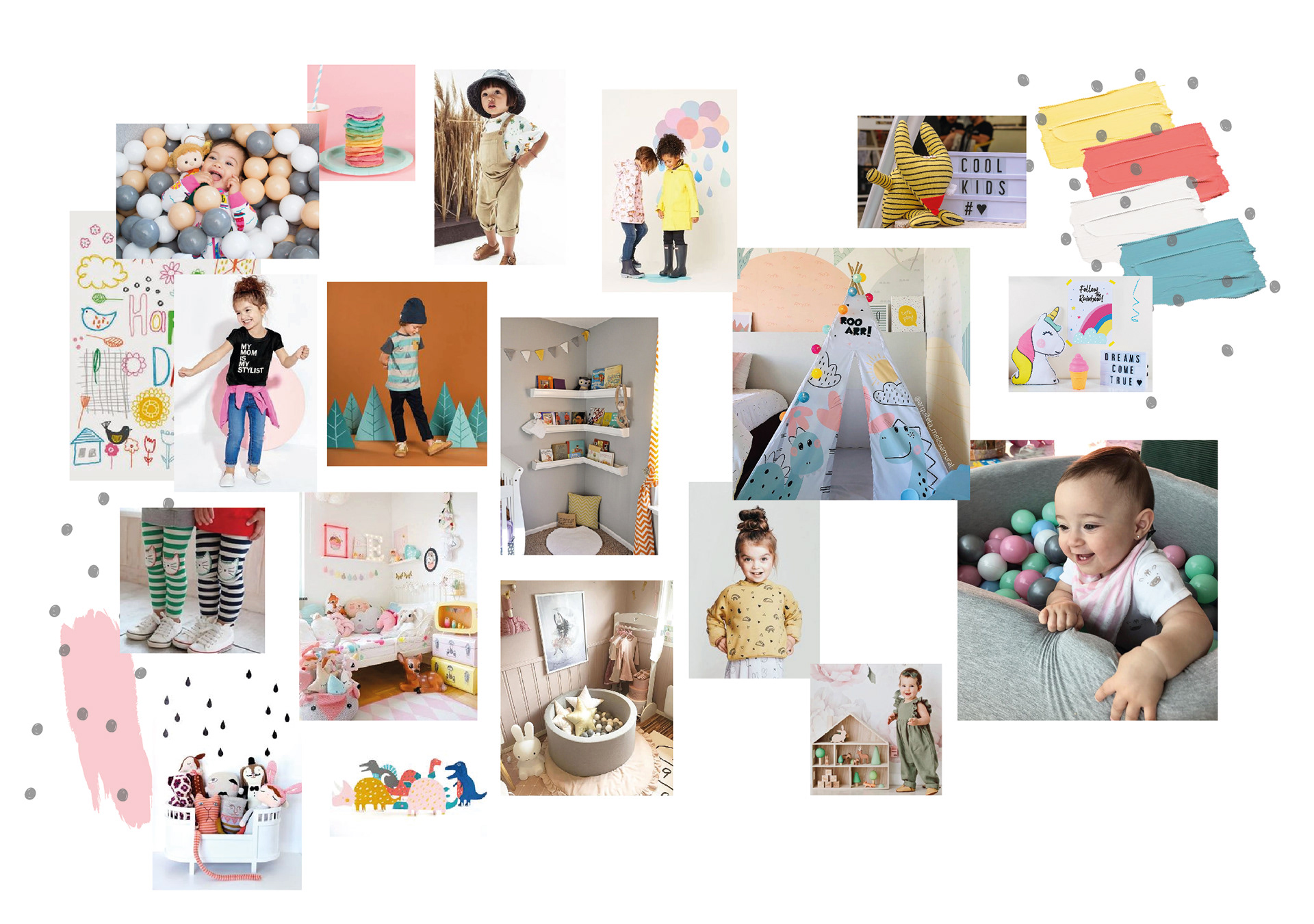Development of collections for decorating children's rooms, mood boards, modeling, illustrations and photos